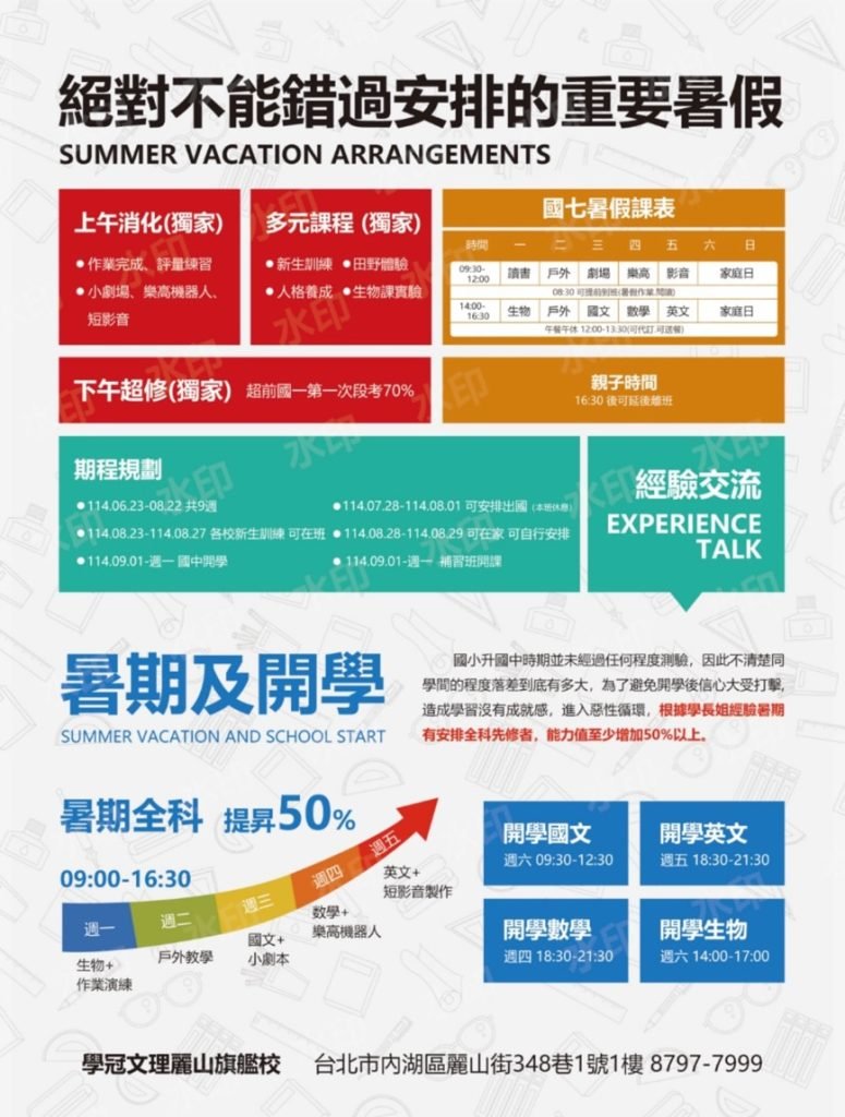 不論以後孩子是念公立或是私立中學,都將在三年後的會考一決高下,今年升七年級,多佳【升國七全日班】,可以給您的孩子許多的幫助。